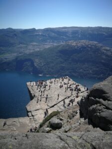 To imponująca, płaska skalna półka zawieszona 604 m nad Lysefjordem.
