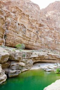 Popołudnie i noc spędzimy w urokliwym Wadi Shab. Wadi Shab to jedno z najpopularniejszych wadi w Omanie. Przepiękne krajobrazy skał, intensywnie turkusowy kolor wody i jej orzeźwiająca temperatura skutecznie przyciągają Omańczyków oraz turystów do siebie. Można tu bardzo sympatycznie spędzić popołudnie i cieszyć się możliwością pływania w grotach i pod wodospadem.